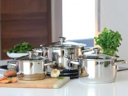 Кухонная посуда из нержавейки – практически идеальное решение: она стильно выглядит, красиво сияет, не повреждается даже при интенсивном использовании.