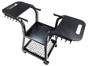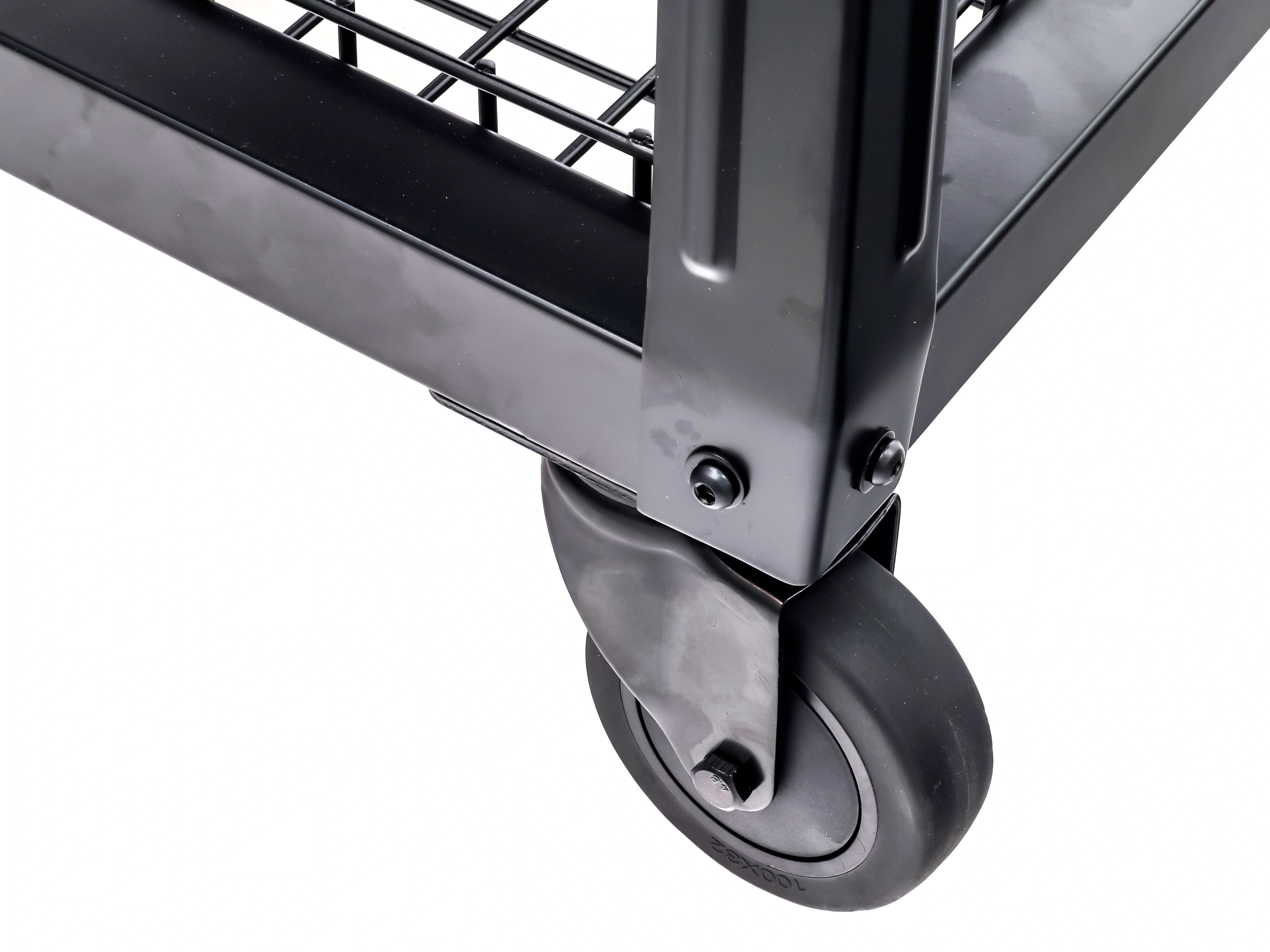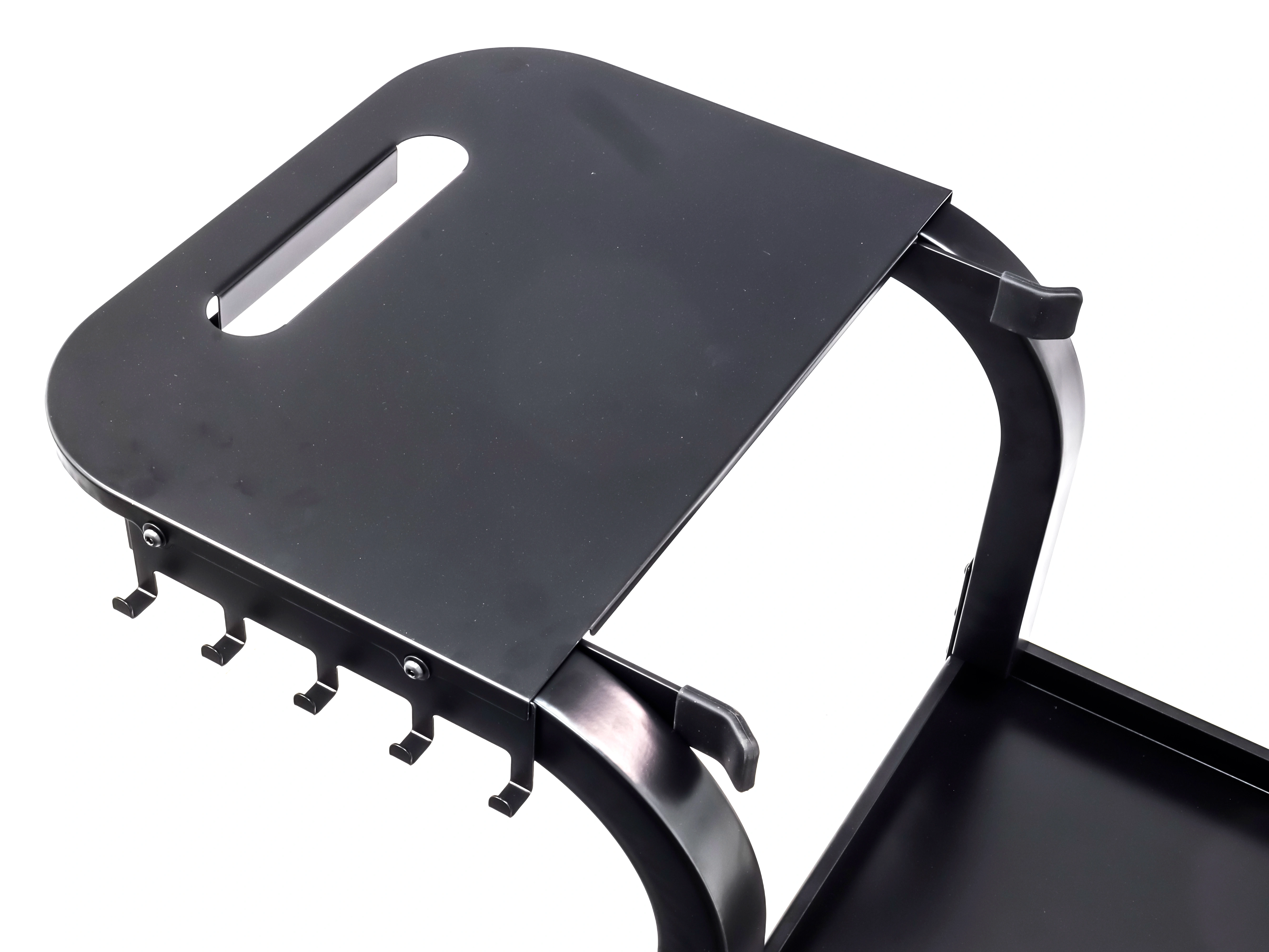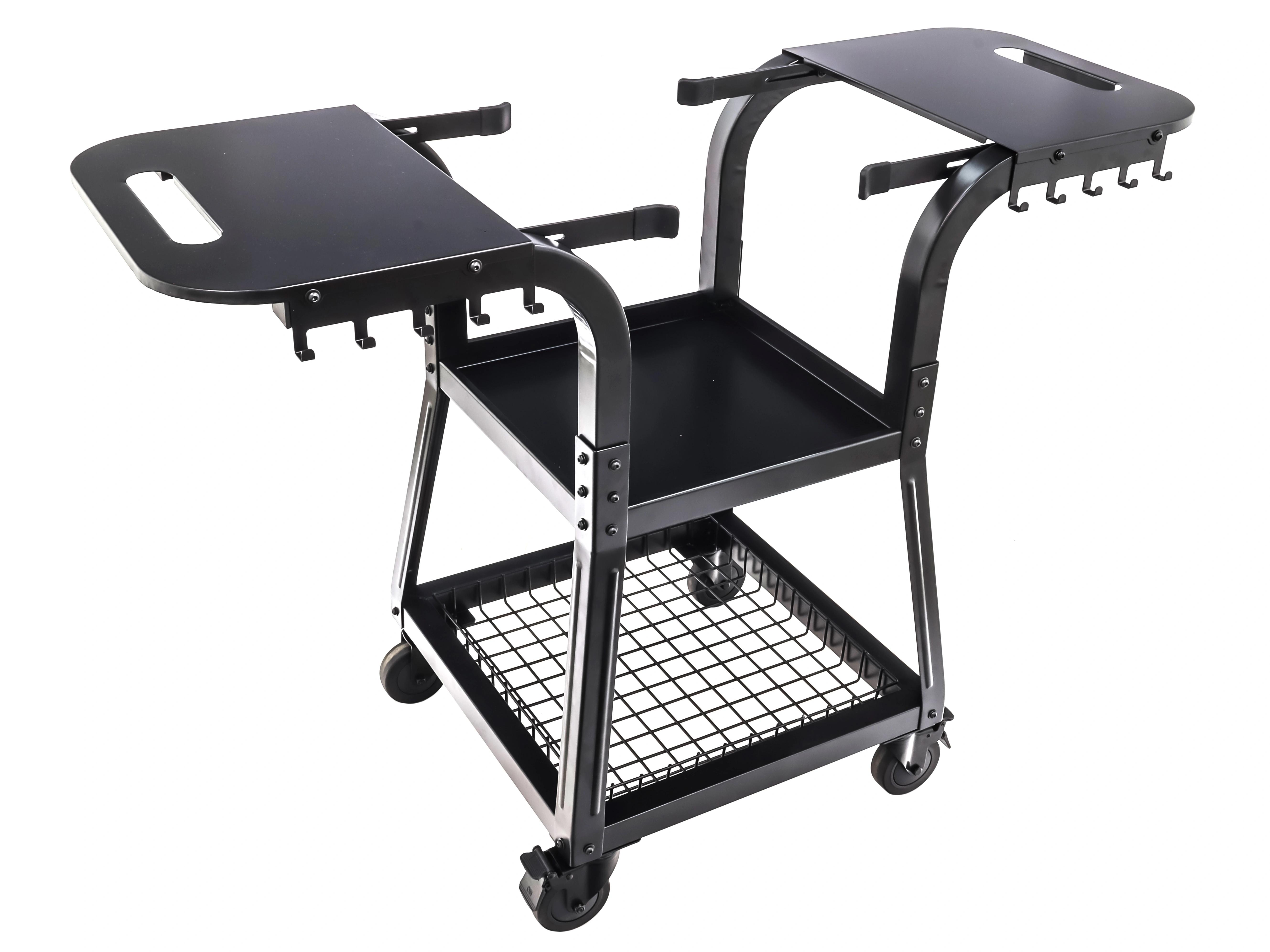 Модуль для гриля Stand-T со столиками от бренда Plover имеет транспортировочные колеса, два из которых имеют надежный тормоз, что позволят перемещать гриль без особых усилий. Помимо этого он оборудован двумя боковыми столиками, оснащенными пятью крючками с каждой стороны. Имеется удобная ниша для хранения различных предметов. Модуль оборудован системой фиксации гриля для большей устойчивости.