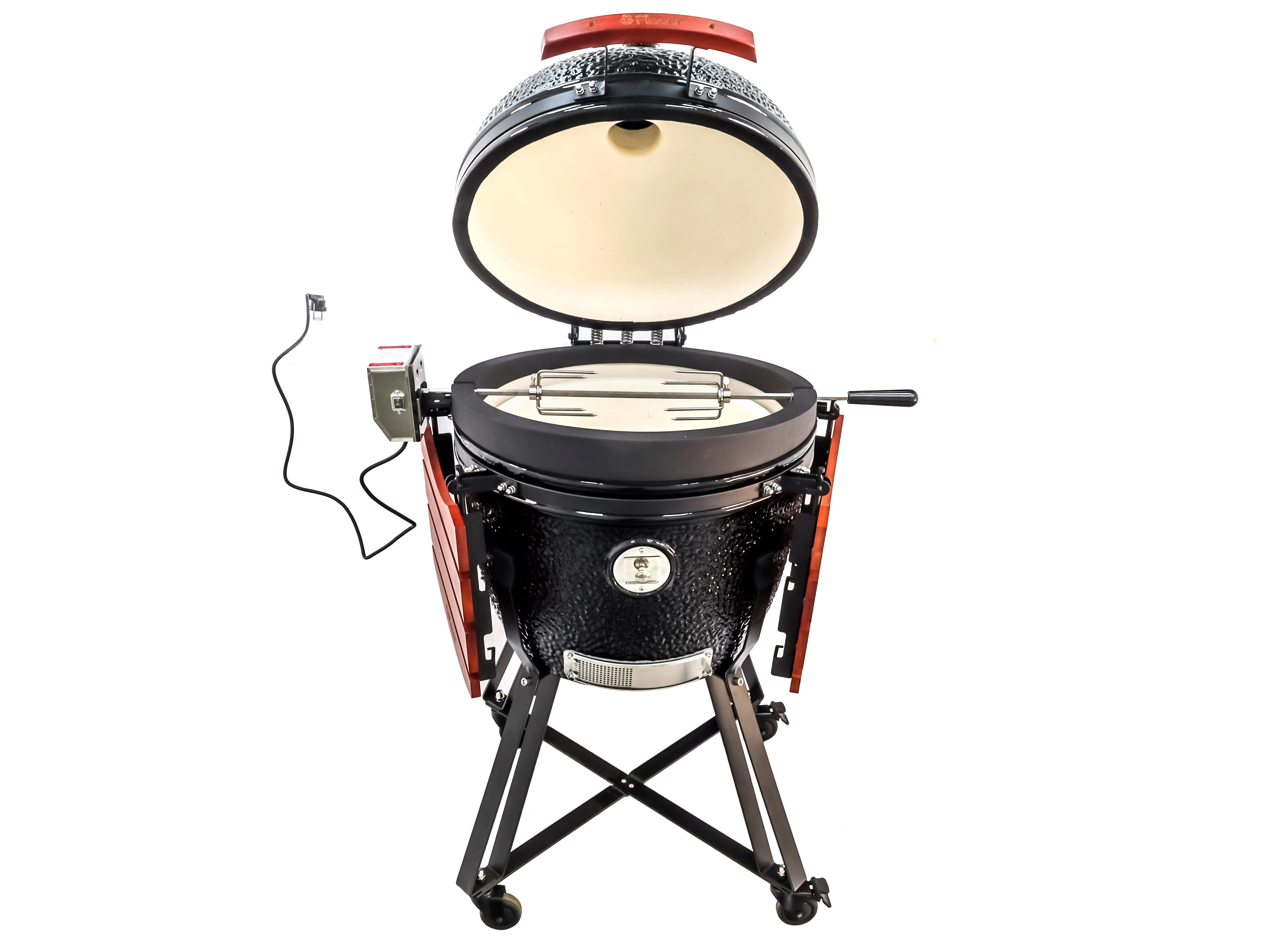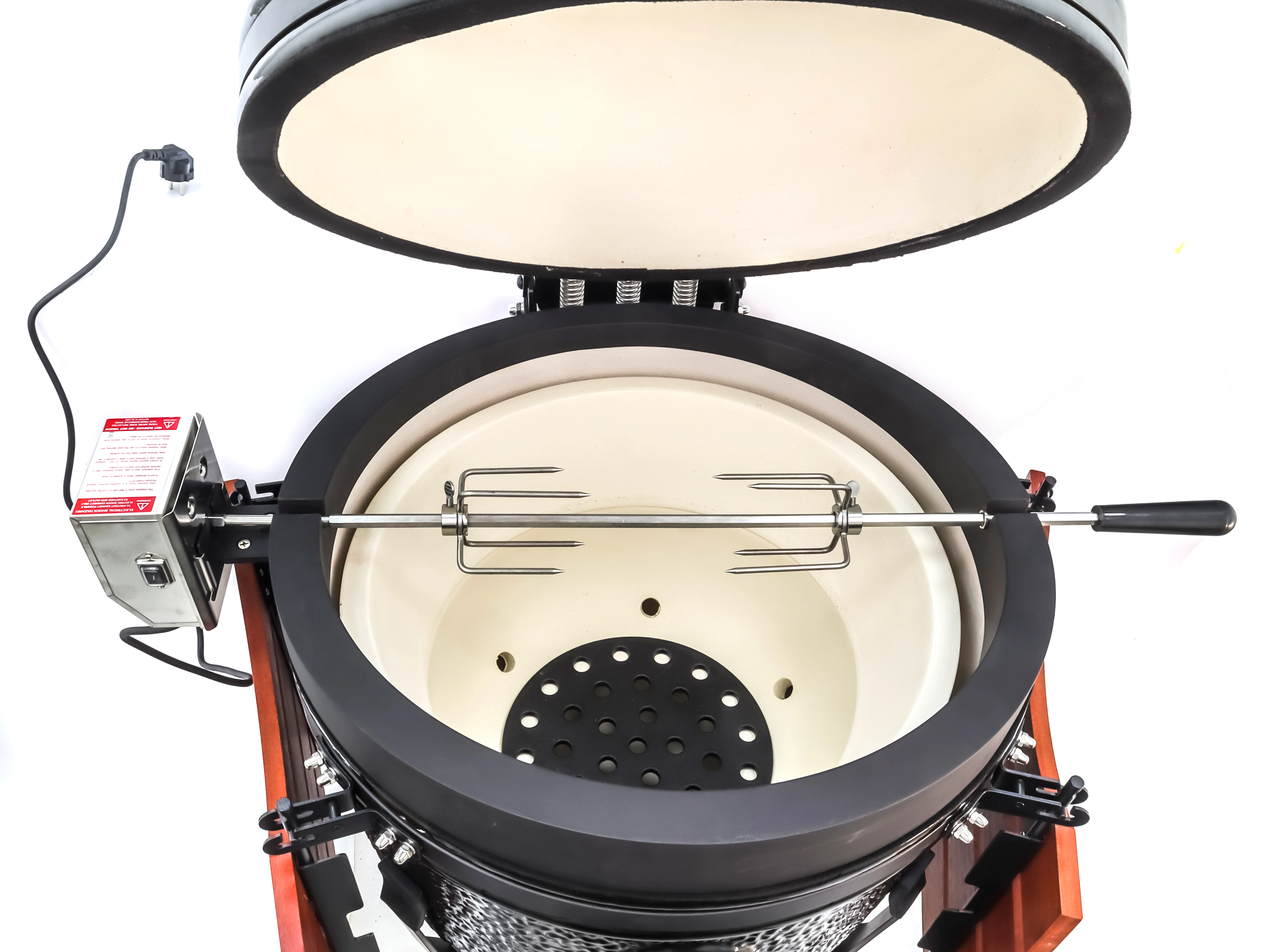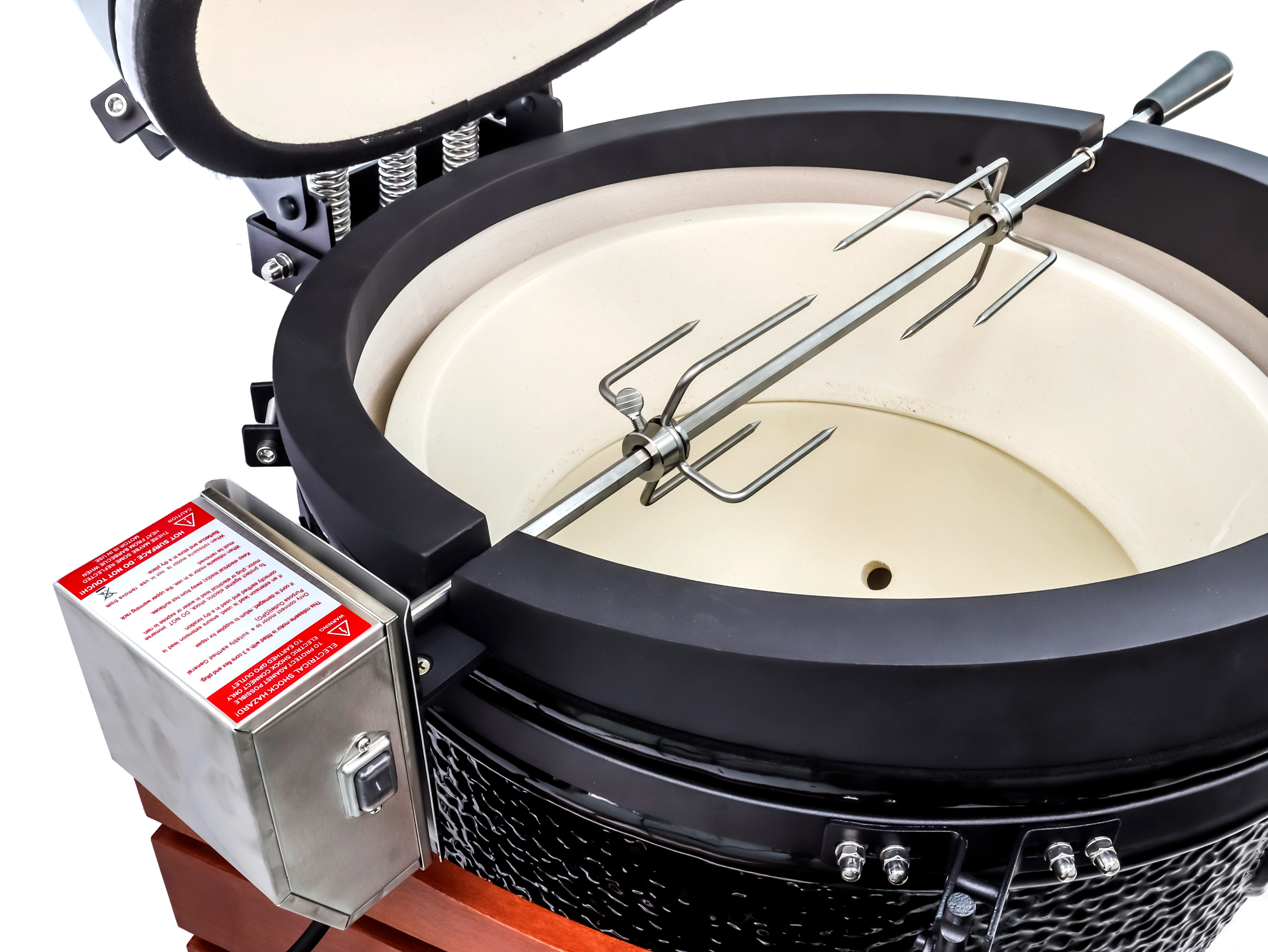 Электрический вертел SE‑RK 23,5 от Plover — профессиональный аксессуар для равномерного приготовления крупных кусков мяса, птицы или рыбы на керамических грилях диаметром 60 см/24 дюйма.