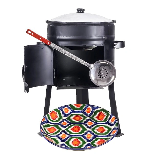Набор состоит из компактной стальной печи под казан с толщиной стенок 2 мм с дверцей, толстостенного чугунного казана с плоским дном емкостью 8 л с алюминиевой крышкой и шумовки из нержавеющей стали, а так же в подарок идет ЛЯГАН "РИШТАН"! Практично, удобно, выгодно!