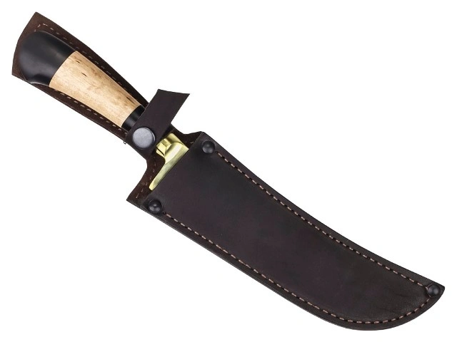 Хозяйственный стальной нож для нарезки мяса, овощей и других продуктов, продукция российской марки “Ножеяр”, артикул VORSM018. Общая длина ножа 295 мм, длина клинка 170 мм, ширина клинка 32 мм, толщина клинка 4 мм, ширина рукояти 22 мм. Ножны поставляются в комплекте. Купите в Москве нож Джинн "Ножеяр" х12мф (ручка — карельская береза, граб) на сайте Plover прямо сейчас, количество товара ограничено.