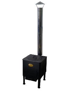 Материал исполнения: Печь - высококачественная сталь 08 ПС толщиной 2 мм., защитный слой - термостойкая эмаль, дымоход - нержавеющая сталь.