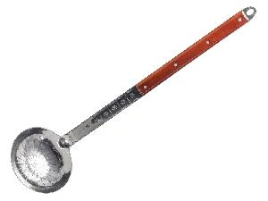 Красивый половник, изготовленный из высококачественной стали с длинной деревянной ручкой, станет незаменимым помощником при приготовлении плова и других блюд. Подойдет к казанам с большой емкостью от 50 до 225 л. Ширина половника - 14,5 см