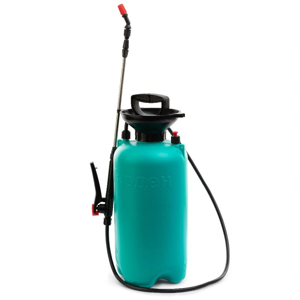 Оснащен помповым насосом для нагнетания давления и выпускным клапаном для сброса давления внутри бака. Форсунка регулирует поток подаваемой жидкости, благодаря чему будет возможно как мелкодисперсное распыление, так и распыление струей. Воронка минимизирует риск разлива жидкости. Регулируемый по высоте ремешок поможет удобно и безопасно перемещать изделие. Шкала на ёмкости поможет контролировать количество заливаемой жидкости.