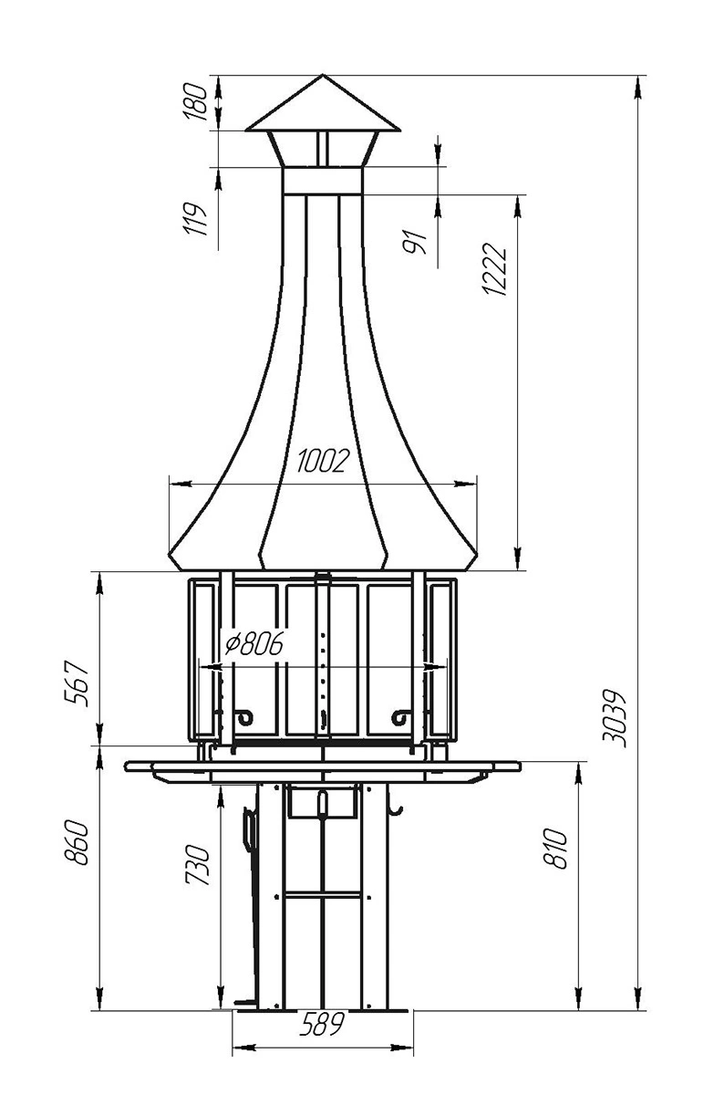 Гриль барбекю угольно-дровяной. Russia Grill модель GRILL - 204/80 (Граненый купол)
