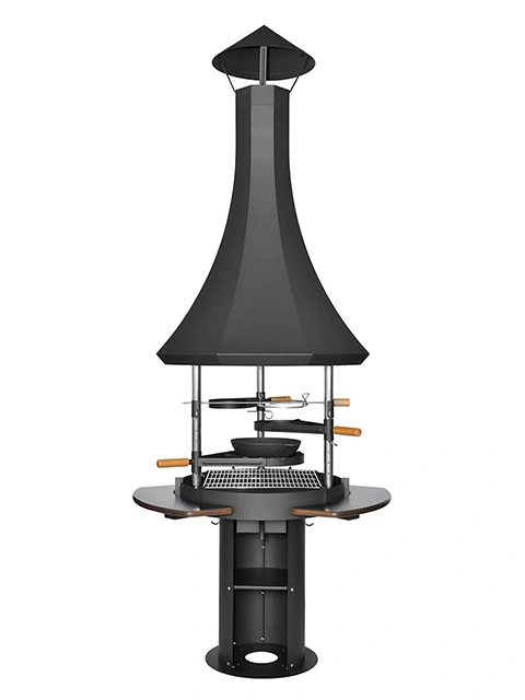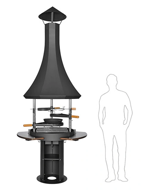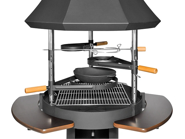 • три поворотные подставки с регулировкой высоты над очагом, позволяющие одновременно готовить несколько блюд в различных температурных режимах