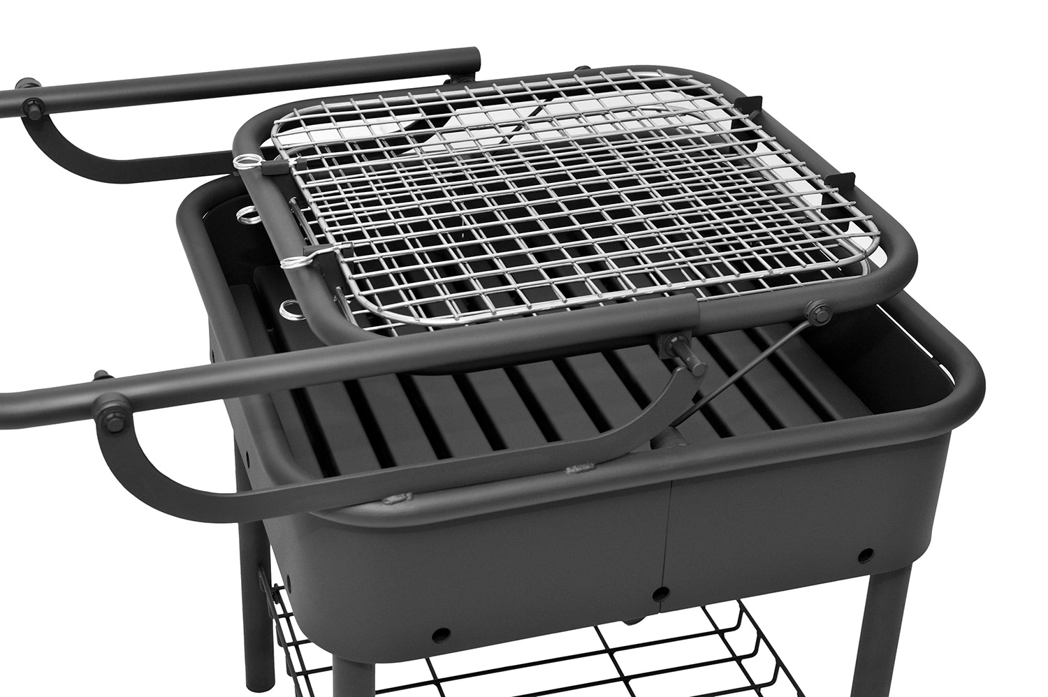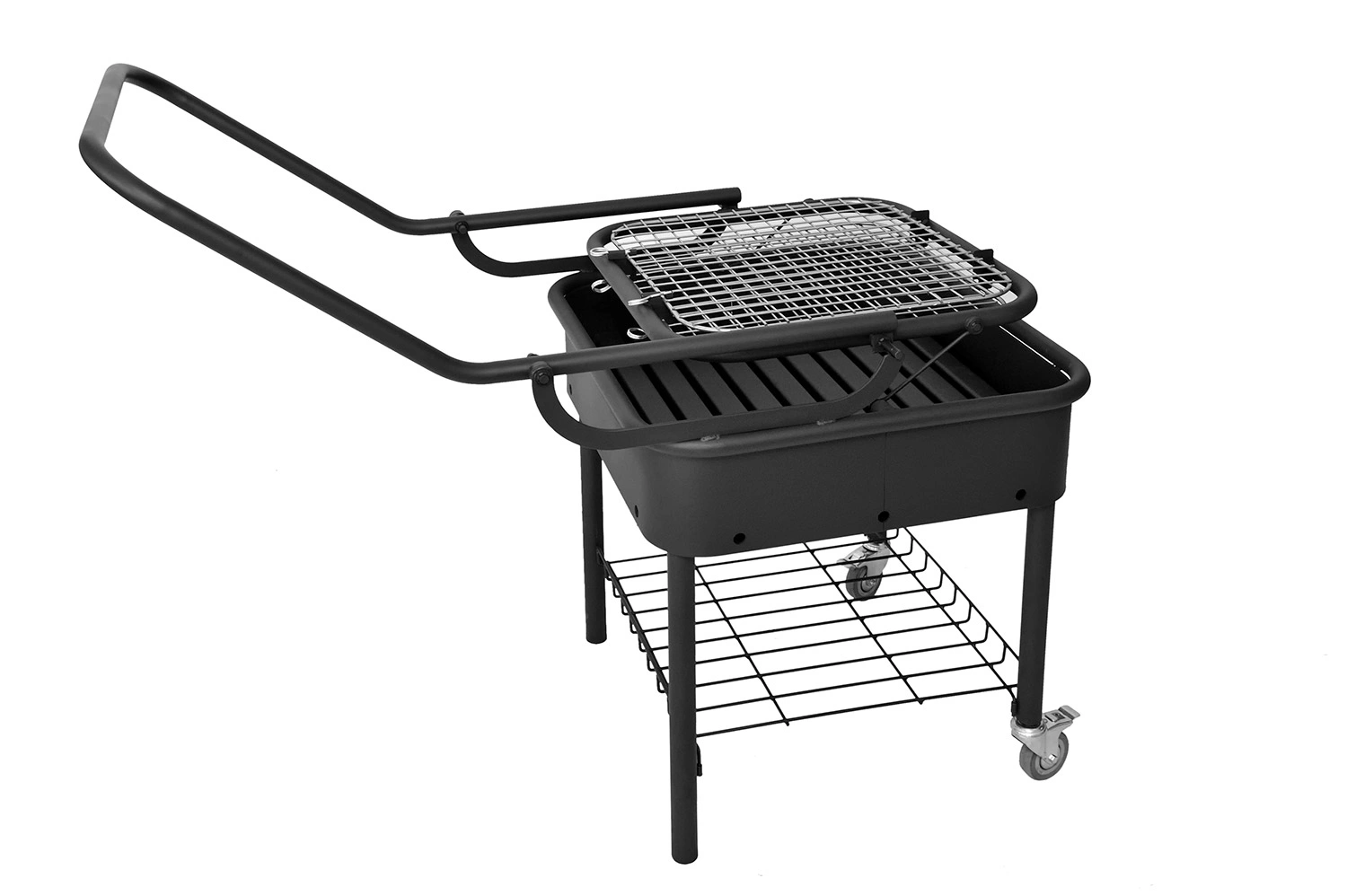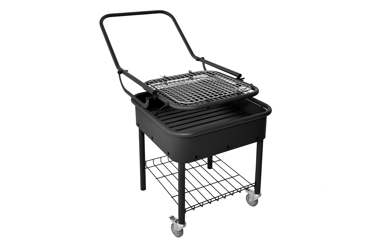 Гриль-барбекю модели GRILL – BOX можно встроить в стену или просто поставить на любую поверхность, смонтировать в доме или перевозить на автомобиле на дачу. Главная отличительная особенность этой модели — удобный и безотказный механизм подъема для дров/углей со съемной рукояткой. Смена уровня поддона позволяет менять температуру готовки. В комплектацию также входят решетка-гриль и шашлычный модуль.