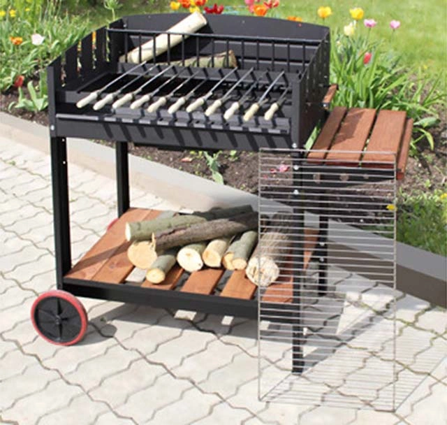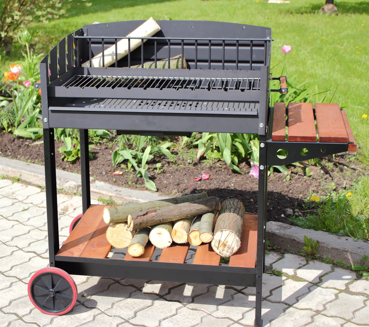 Изделие, представленное в каталоге нашего сайта, оборудовано небольшими колесами, жаровней, имеющей четыре позиции для регулировки высоты решетки, а также зольником для сбора пепла. Все это, в сочетании с компактными размерами, делает устройство практичным и незаменимым на даче для каждого ценителя хороших вещей. Дополнительно можно приобрести крышу.