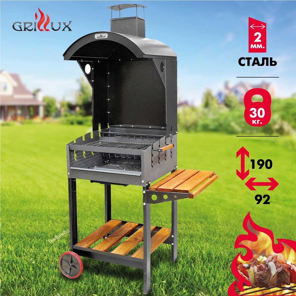 • может быть оборудован крышей с дымоходом (приобретается отдельно)