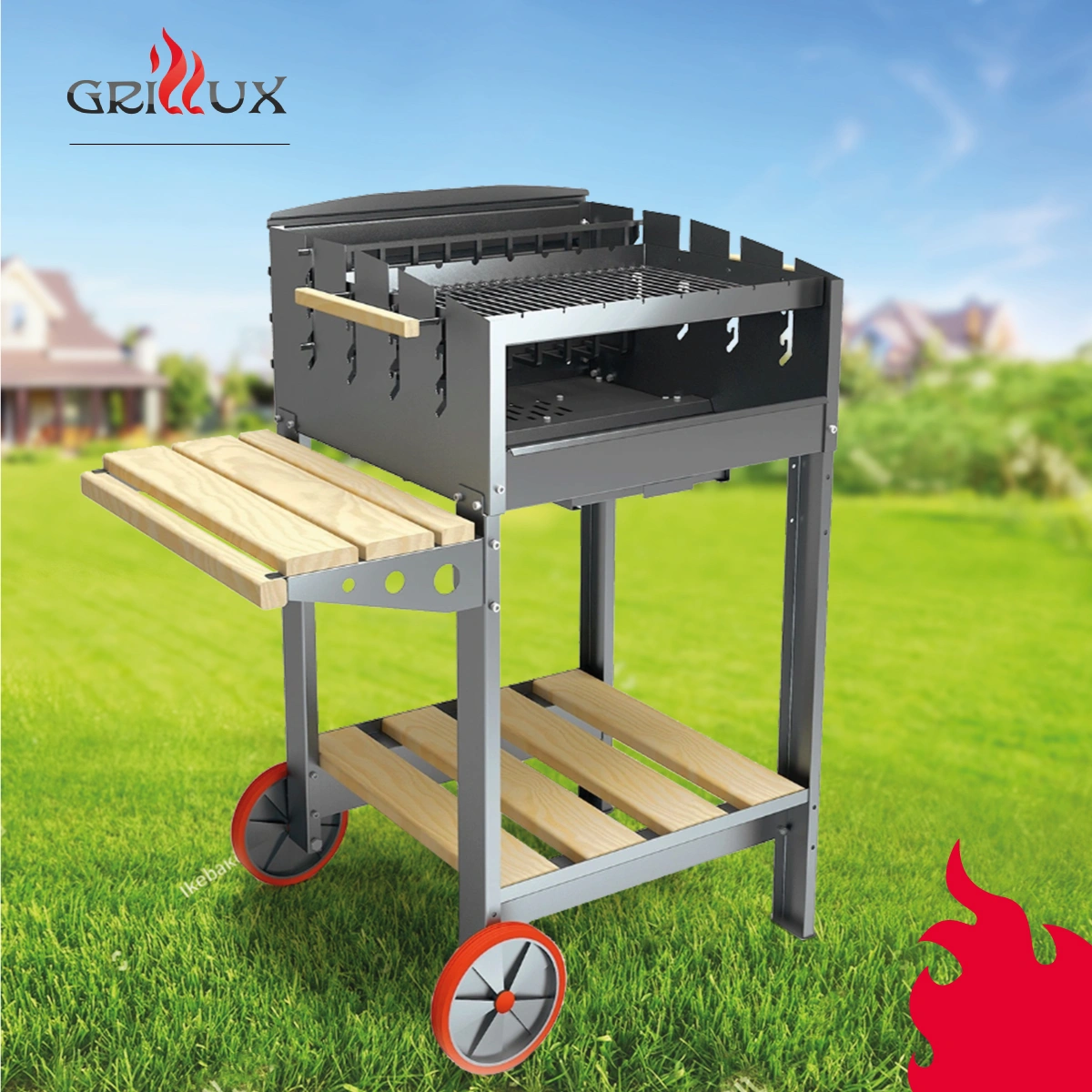 Гриль, рамка для шампуров, решетка-гриль из нержавеющей стали, подвесная полка, генератор угля, ножки с колесом