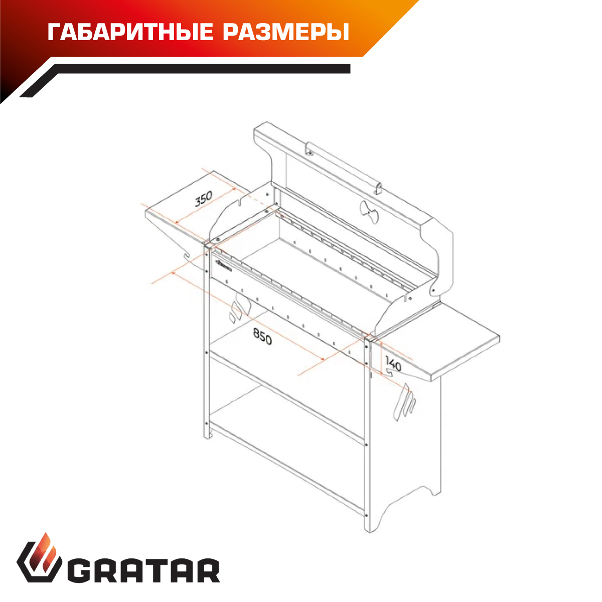 * топка мангала может вместить три решётки барбекю GRAT-35