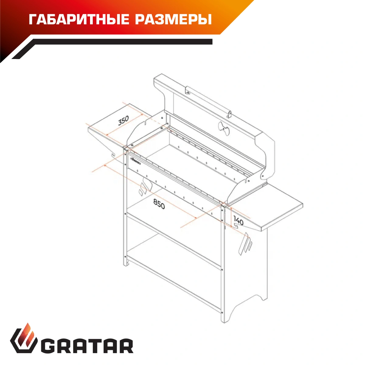 * топка мангала может вместить три решётки барбекю GRAT-35