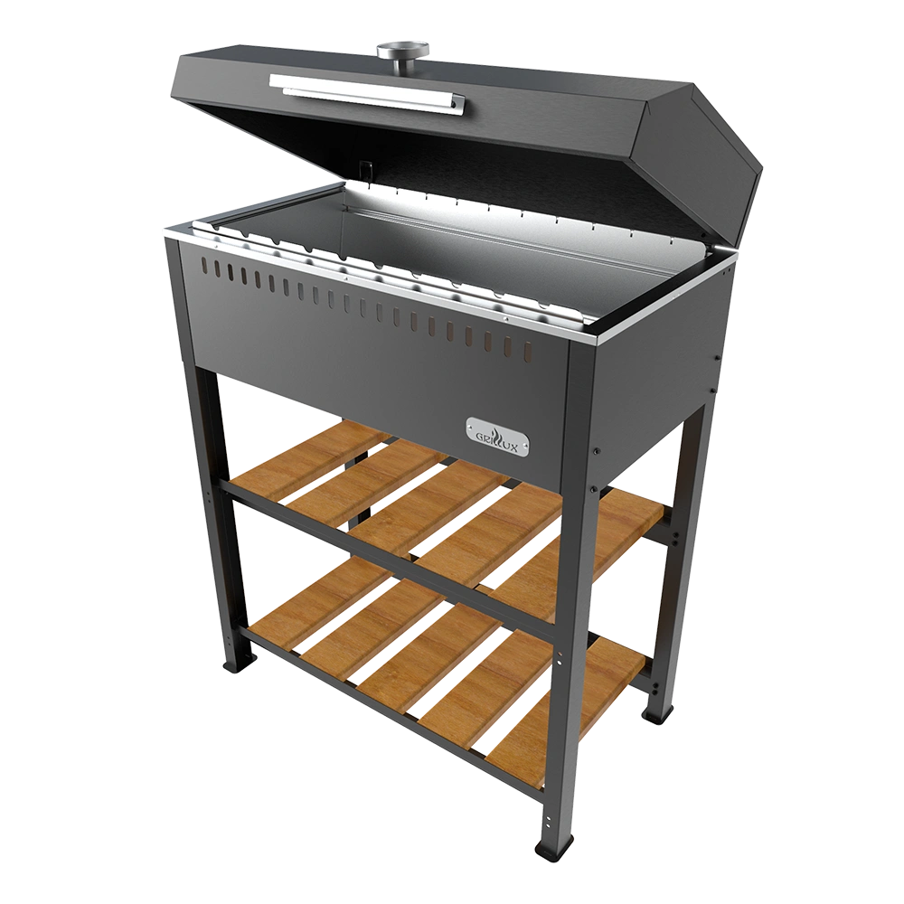 Устройство оснащено крышкой с термометром и заслонкой, что позволяет контролировать температуру во время приготовления. Создайте свою индивидуальную садовую кухню в комбинации с модулем стола и тумбы (приобретаются отдельно).