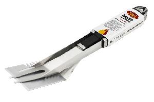 В этом разделе каталога вы найдете отдельные инструменты, но лучше купить набор для барбекю в сумке — инструменты систематизированы, при перевозке остаются на местах. Самые простые комплекты состоят из трех-четырех предметов: щетки, щипцов, лопатки, кисточки. Прочная легко моющаяся кисть помогает распределить маринад по поверхности мяса. Щипцы необходимы, чтобы не пачкать руки, они удобны при работе с сырыми и готовыми ингредиентами. Щипцы с рифлеными краями лучше удерживают продукты. Размер лопатки должен подходить к высоте жаровни, чтобы приготовление стейков не обернулось болью в руке. Щетку выбирайте жесткую, с длинной ручкой, закругленными краями рабочей части. Большой подарочный кейс может включать вилки, стейковые ножи, вилочки для кукурузы, шампуры, солонки, перечницы. Дополнительно советуем приобрести рукавицы и фартук, они пригодятся независимо от того, покупаете вы инструменты себе или в подарок.