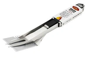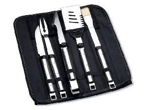 В этом разделе каталога вы найдете отдельные инструменты, но лучше купить набор для барбекю в сумке — инструменты систематизированы, при перевозке остаются на местах. Самые простые комплекты состоят из трех-четырех предметов: щетки, щипцов, лопатки, кисточки. Прочная легко моющаяся кисть помогает распределить маринад по поверхности мяса. Щипцы необходимы, чтобы не пачкать руки, они удобны при работе с сырыми и готовыми ингредиентами. Щипцы с рифлеными краями лучше удерживают продукты. Размер лопатки должен подходить к высоте жаровни, чтобы приготовление стейков не обернулось болью в руке. Щетку выбирайте жесткую, с длинной ручкой, закругленными краями рабочей части. Большой подарочный кейс может включать вилки, стейковые ножи, вилочки для кукурузы, шампуры, солонки, перечницы. Дополнительно советуем приобрести рукавицы и фартук, они пригодятся независимо от того, покупаете вы инструменты себе или в подарок.