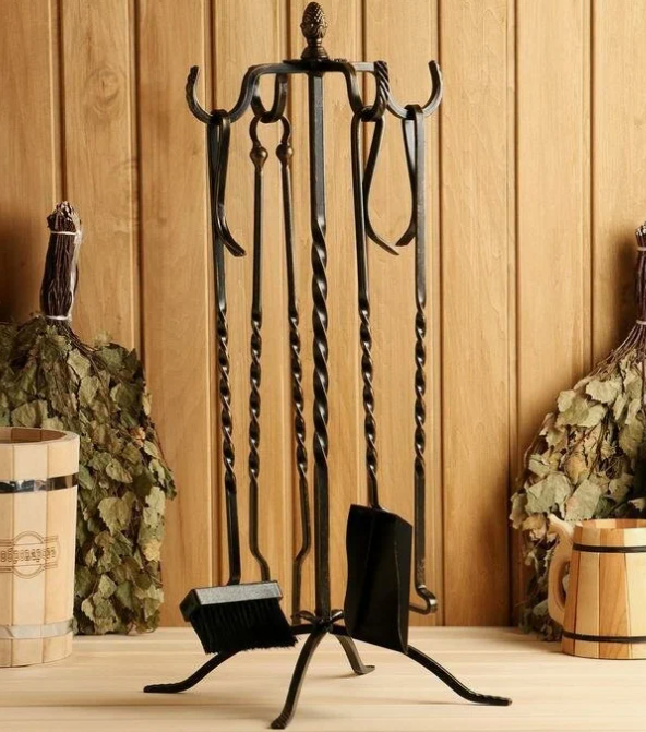 В набор также входят щётка, удобные щипцы, кочерга и прямоугольный совок, которые позволяют ежедневно ухаживать за камином, очищать его от золы и остатков древесины.