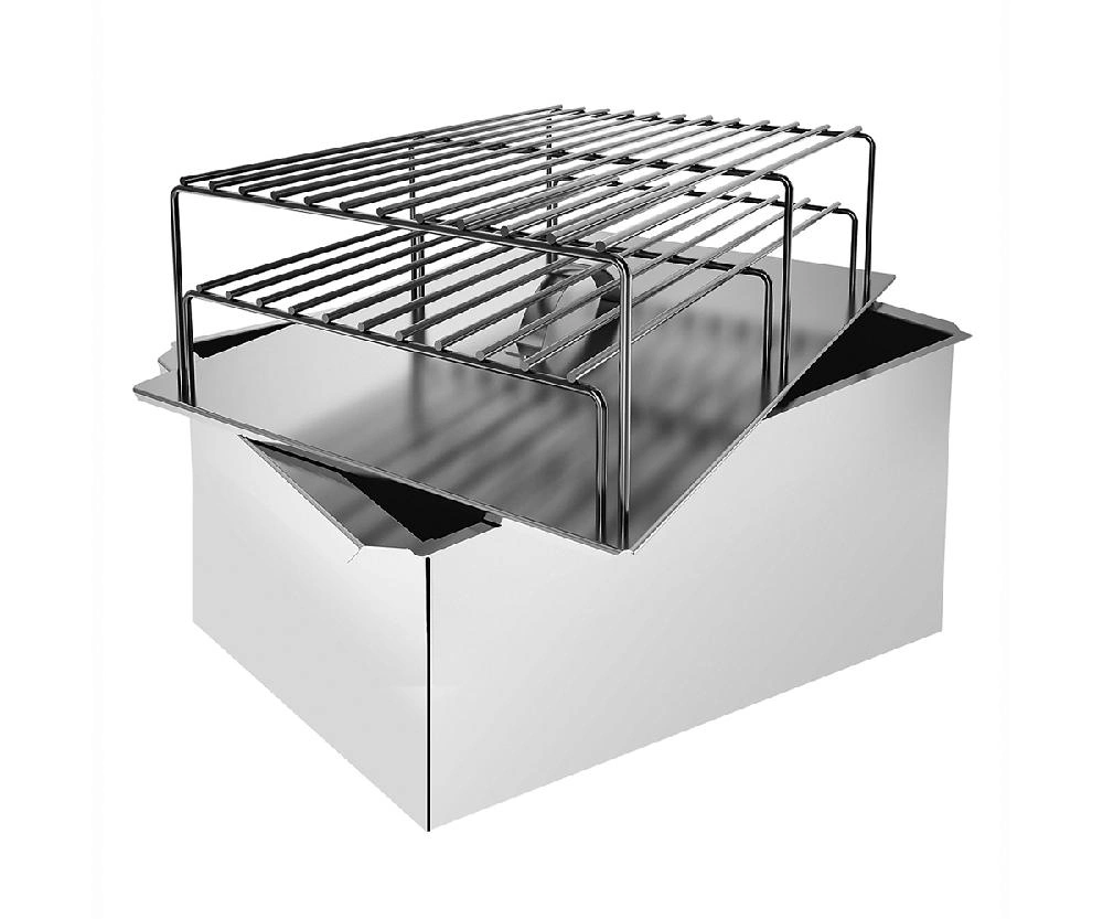 В комплектацию коптильни входит компактный короб для углей, крышка и удобная решетка, состоящая из двух ярусов. Такая особенность позволяет максимально использовать рабочее пространство и создавать настоящие кулинарные шедевры, которые порадуют изысканным вкусом и ароматом.