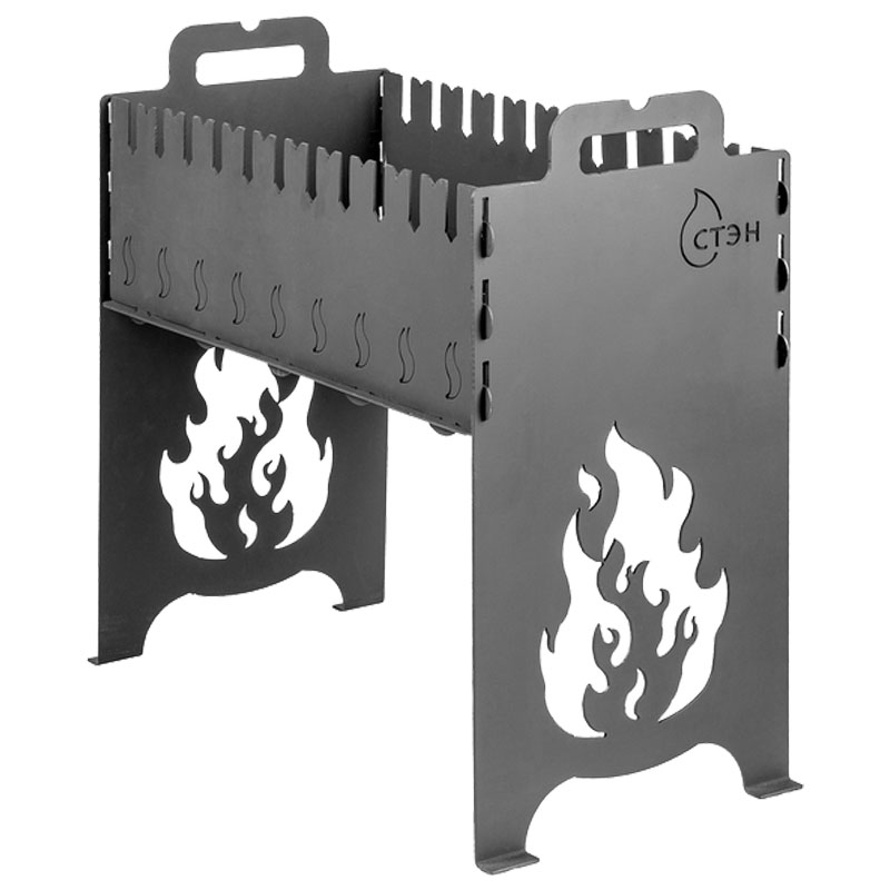 Разборный мангал из стали транспортируется в виде отдельных частей. Толщина стенок 3 мм позволяет избежать деформации металла и делает жар более равномерным. У мангала есть ручки, чтобы вы могли переносить его в собранном виде в любое место. Разборный мангал быстро устанавливается и легко демонтируется при отъезде