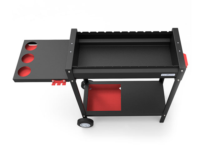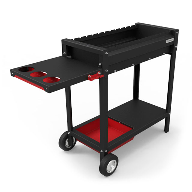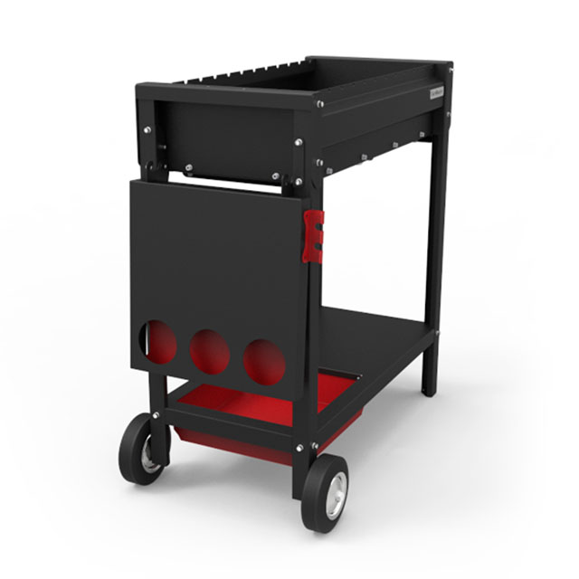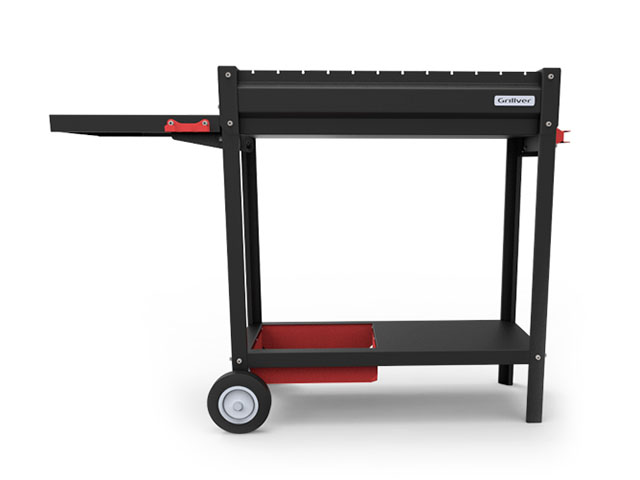 Удобная полка для хранения с корзиной позволяет хранить все необходимые принадлежности рядом с мангалом.