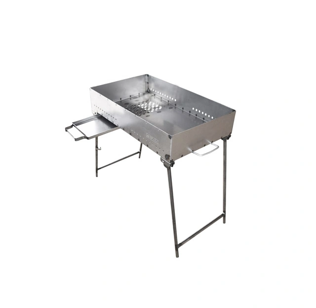 Легкий, компактный, быстро собирающийся мангал классической конструкции представляет собой стальной короб со складными ножками. Наличие ребер жесткости придают мангалу дополнительную прочность, оптимальная толщина исключает деформацию стенок от жара углей. Воздух, обеспечивающий равномерное горение, поступает через отверстия в стенках мангала. Пазы на боковине позволяют установить шампуры в нужном положении. Для образующейся золы предусмотрен зольник.