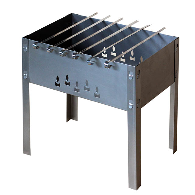 Мангал «Тайга» комплектуется 6 шампурами. Легко собирается в рабочее положение (1–2 мин.)