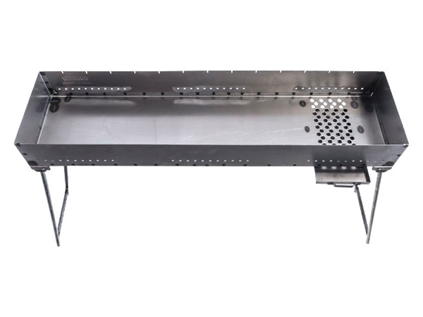 Легкий, компактный, быстро собирающийся мангал классической конструкции представляет собой стальной короб со складными ножками. Наличие ребер жесткости придают мангалу дополнительную прочность, оптимальная толщина исключает деформацию стенок от жара углей. Воздух, обеспечивающий равномерное горение, поступает через отверстия в стенках мангала. Пазы на боковине позволяют установить шампуры в нужном положении. Для образующейся золы предусмотрен зольник.
