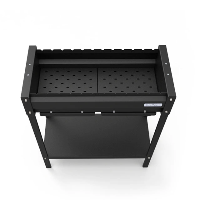 Нижняя часть мангала оснащена удобной полкой, где вы можете разместить дополнительные продукты, топливо или другие необходимые предметы.