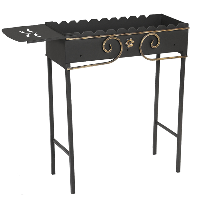 Настоящая горячая ковка! Полностью разборная конструкция позволяют удобно транспортировать мангал. Съемный столик украшен лазерной резкой.