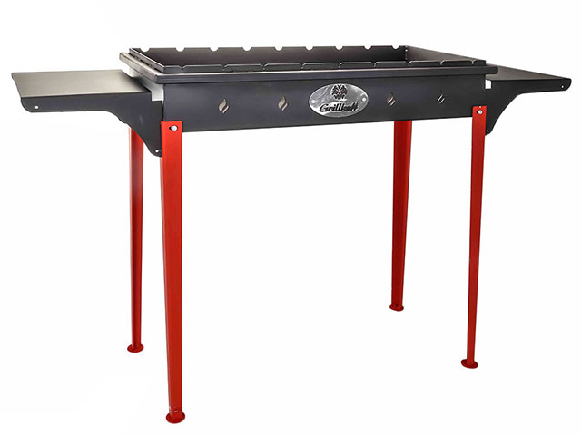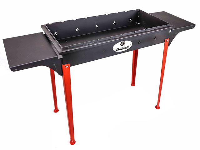 Мангал комплектуется 2 боковыми съёмными столиками и 4 съёмными ножками.