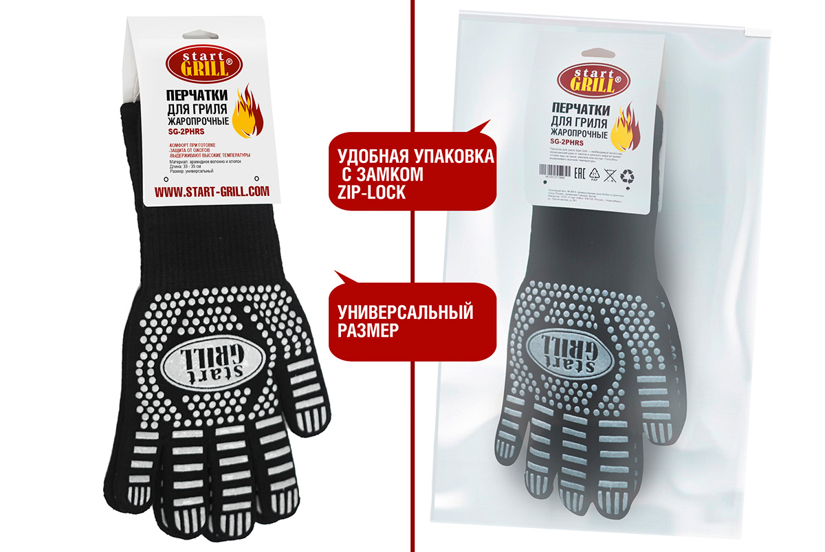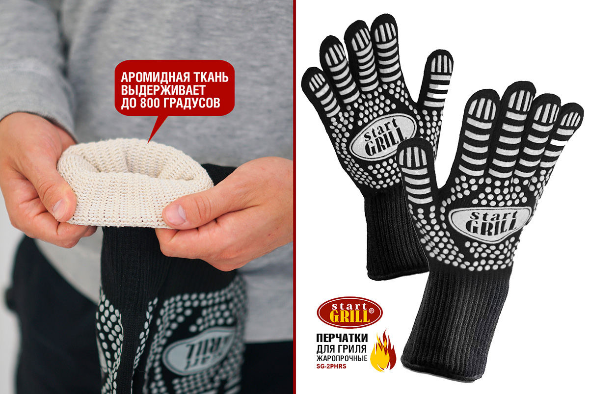 Жаростойкие перчатки Start Grill — это незаменимый аксессуар для защиты рук от высоких температур и ожогов во время готовки еды на гриле, мангале или костре. Кроме того, благодаря огнеупорным свойствам, их можно использовать и в других целях, например, подкинуть или переложить дрова в печи.