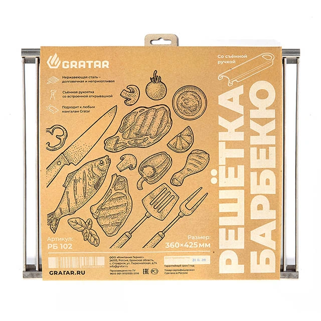 Решетка для мангала, барбекю, нержавеющая сталь, съемная ручка GRATAR