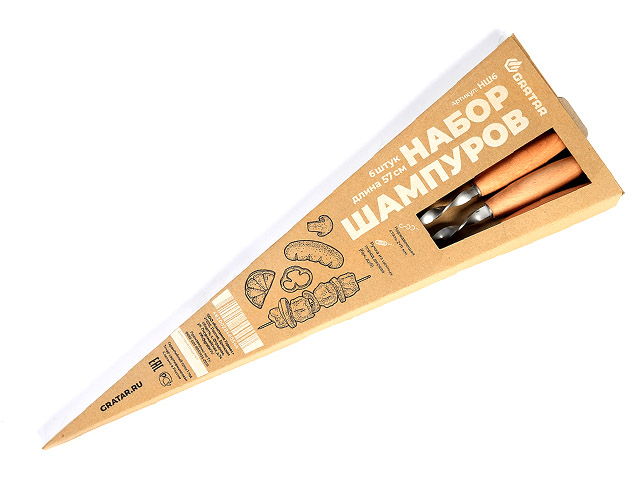 Шампуры сделаны из высококачественной стали, ручки — из ценных пород дерева (бук, дуб). Основание в виде спирали обеспечивает разворот шампура в пазах мангала, заостренное окончание позволяет нанизывать кусочки продуктов, не повредив их. Шампуры подходят ко всем мангалам Gratar и другим моделям.