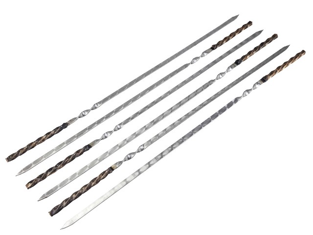 Комплект из 6 шампуров, продукция российского бренда “Стальные решения”. Длина шампура 50 см, ширина 1,2 см, толщина стали 3 мм, вес набора 2,5 кг. Артикул товара в магазине RESH-20. Купить в Москве набор шампуров с кованой ручкой Витая или заказать с доставкой по России вы можете через наших операторов.