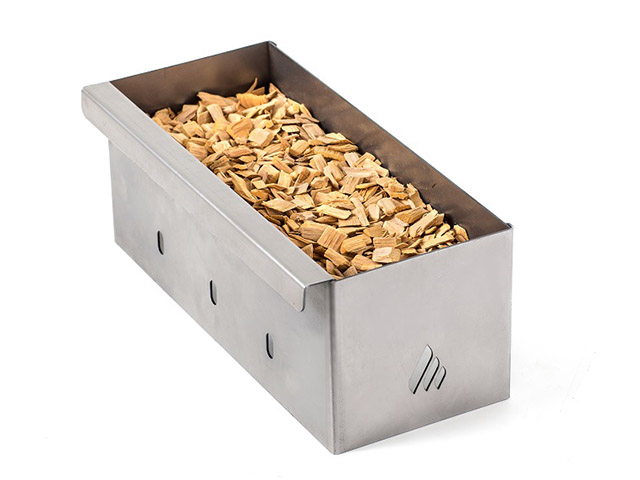 Небольшое устройство расширит возможности вашего мангала: при наличии жаровни и крышкой и решетки барбекю оно превращается в портативную коптильню. Ящик ставиться на угли, продукты располагаются на решетке, закрытая крышка обеспечивает процесс копчения.