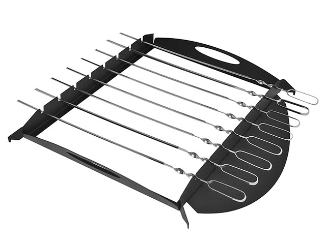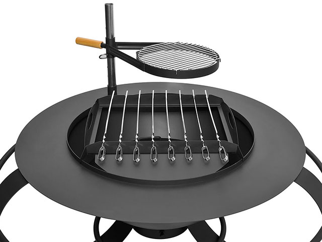 Необычное решение воплотили в модели кострового очага №2. Есть удобная подставка для ног. Теперь в прохладные вечера в компании друзей и родных вам будет максимально комфортно проводить время на открытом воздухе. Конечно, это не единственный плюс данной модели. Очаг №2 еще и очень универсален. По правде говоря, это полноценный гриль с хромированной решеткой для барбекю, шашлычным модулем, а на подставку с поворотной опорой вы можете поставить сковороду и готовить на ней (чугунная сковорода уже в комплекте). Поворотная подставка имеет несколько положений по высоте, тем самым обеспечивая полный контроль желаемой температуры. Сам очаг выполнен из 3 мм стали и покрашен термостойкой краской «Церта» и выдерживает до 900 градусов Цельсия. Отличное решение для загородного дома для хорошего отдыха.