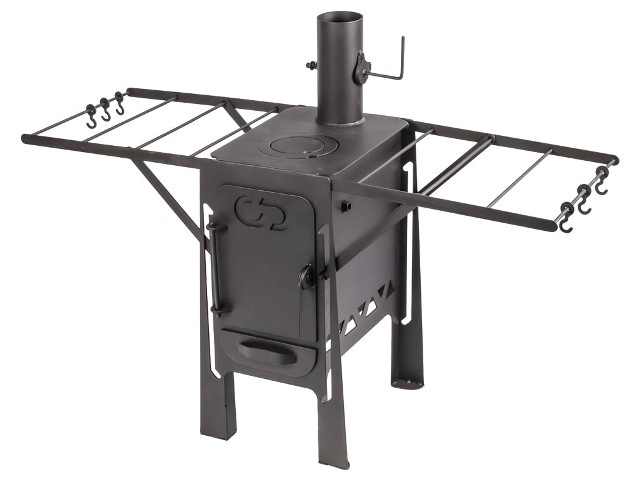 Ширина - 32см Глубина - 45см Высота - 70см, с трубой - 95см Сушилки по 50см на каждой по 3 крючка Толщина металла - 4мм Конфорка - 18 и 12см Заслонка на трубе Вес 55кг