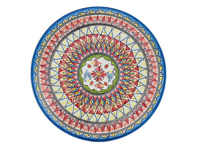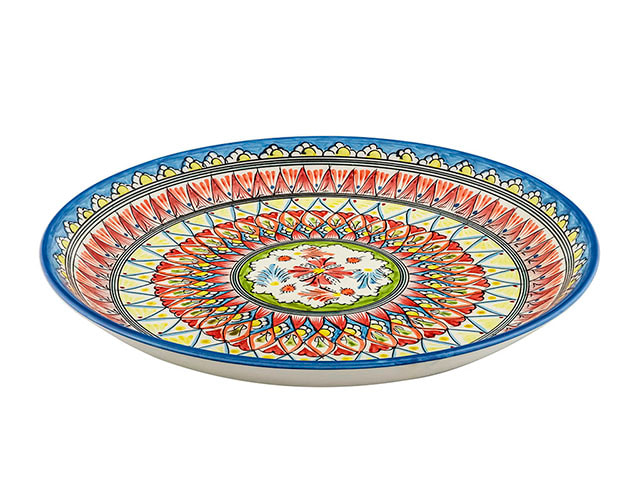 Керамическое блюдо для плова, страна производства Узбекистан. Диаметр 38 см, артикул товара в магазине RSN033. Ляган "Риштанская керамика", синяя мехроб, диаметр 38 см RSN033, купите в Москве или закажите доставку по России.