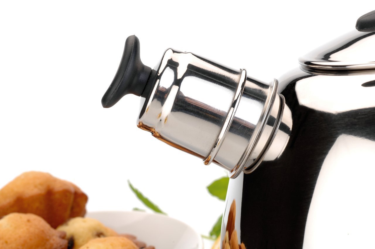 Высокопродуктивный чайник эффективно передает тепло для быстрого закипания, сообщая об этом моменте свистом. Изготовленный из высококачественной нержавеющей стали 18/10, этот чайник имеет большую ручку и удобный носик, обеспечивающий безопасное наливание. Используется на всех видах плит: газовых, электрических, керамических, индукционных.