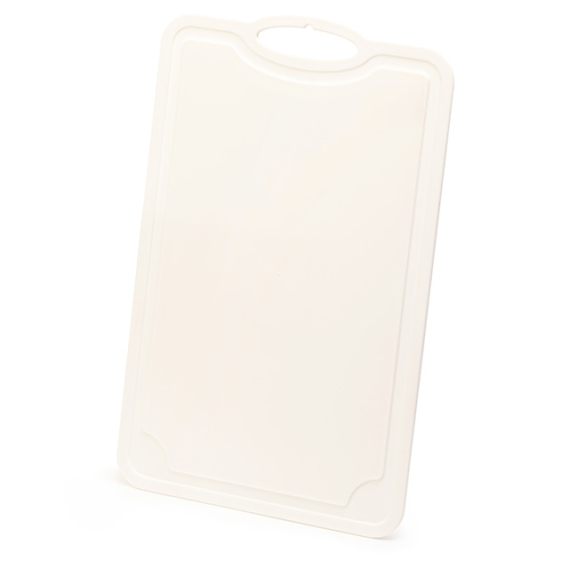 Доска классической прямоугольной формы для работы с зеленью, овощами, фруктами, мясом и рыбой. На доске имеются желобки для стока жидкости, ручка для удобного захвата и подвешивания. Рекомендуем иметь несколько разделочных досок для разных продуктов питания, для этого в нашем ассортименте имеются доски разного размера.
