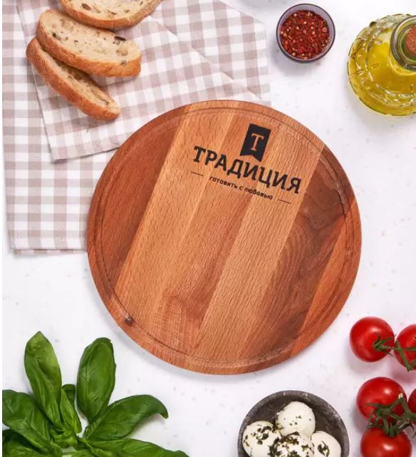 Деревянная разделочная доска ТМ "Традиция готовить с любовью" выполнена из натурального бука, выращенного в России. Это древесина твердых пород, менее чувствительная к влаге. Изготовлена без красящих веществ, на поверхность нанесена водоотталкивающая пропитка растительным маслом, что защищает от впитывания соков и запахов и предотвращает размножение бактерий. Натуральная деревянная доска может быть использована для нарезки, для разделки мяса, как кухонная доска, как подставка. Можно использовать в качестве предмета сервировки для овощей, сыра, мяса, хлеба и других блюд. Доска имеет углубление для стока жидкости вдоль края. Красивая, а главное прочная и износостойкая, такая доска станет украшением любой кухни! Деревянный аксессуар - это экологичный и недорогой подарок. Для продления срока службы рекомендуем после каждого использования протирать влажной губкой, вытирать насухо и каждый месяц обрабатывать растительным маслом. Соблюдайте рекомендации, и доска прослужит вам долго!