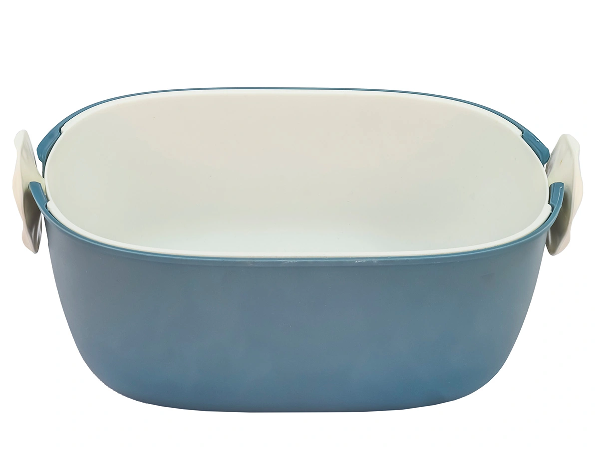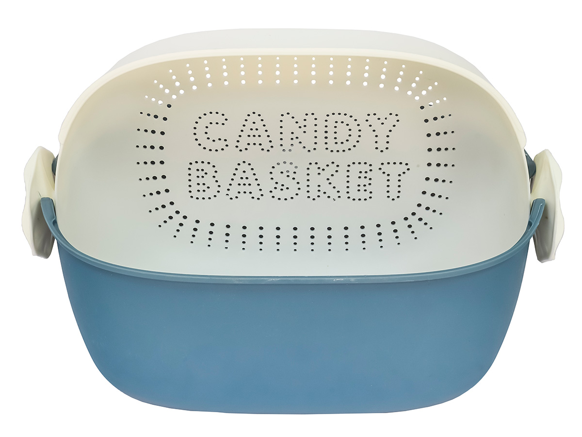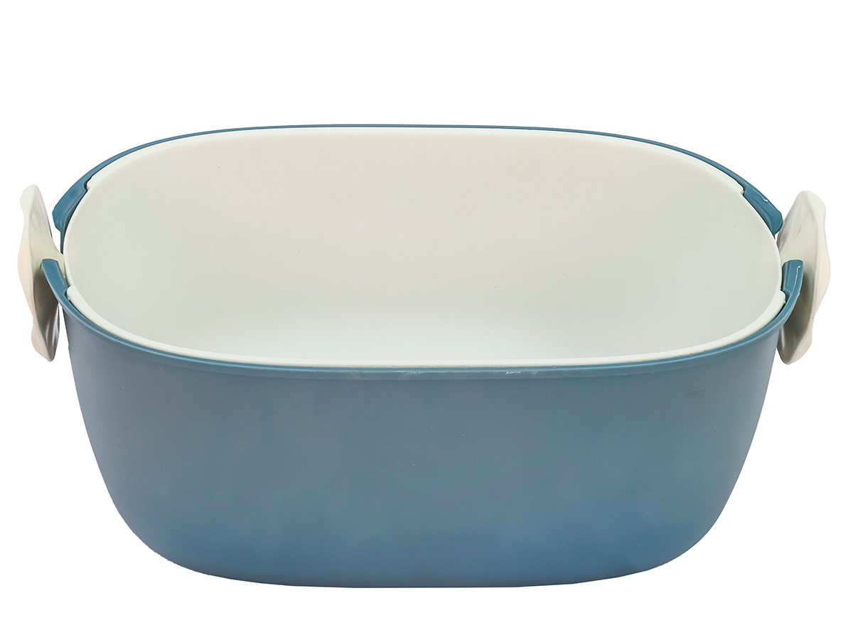 Дуршлаг с миской 2 в 1 овальный, пластиковый, 2.5 л, синий/белый