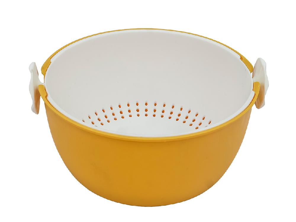 Дуршлаг с миской 2 в 1 круглый, пластиковый, 2 л, желтый/белый