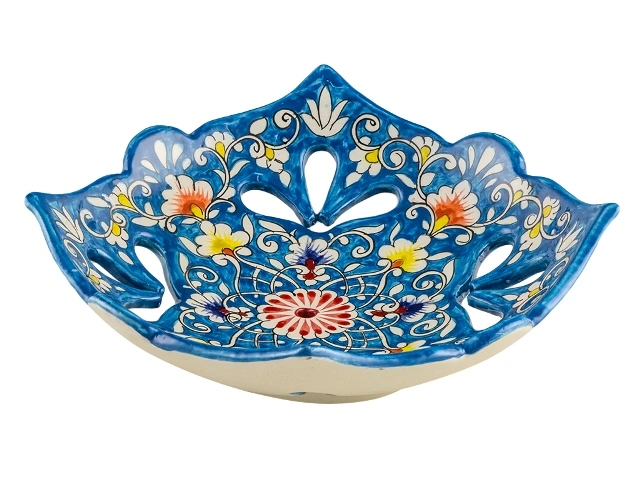 Риштанскую посуду отличают яркие цвета и богатые орнаменты. Каждое изделие уникально и неповторимо, в росписи нет ни одного повторяющегося рисунка. Узор всегда очень мелкий и тонкий, орнамент состоит из огромного числа элементов. В нём использованы абсолютно все оттенки синего и бирюзового цветов. Кстати, если посуда “риштан” выглядит идеально, без единого изъяна – знайте, это подделка!