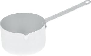 Ковш изготовлен из матового пищевого алюминия. Алюминиевая посуда без покрытия обладает хорошей теплопроводностью,неприхотлива в уходе, по качеству и безопасности соответствует государственным стандартам РФ и гигиеническим нормативам.