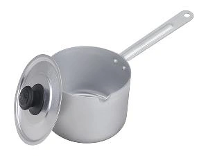 Ковш изготовлен из матового пищевого алюминия. Алюминиевая посуда без покрытия обладает хорошей теплопроводностью,неприхотлива в уходе, по качеству и безопасности соответствует государственным стандартам РФ и гигиеническим нормативам.