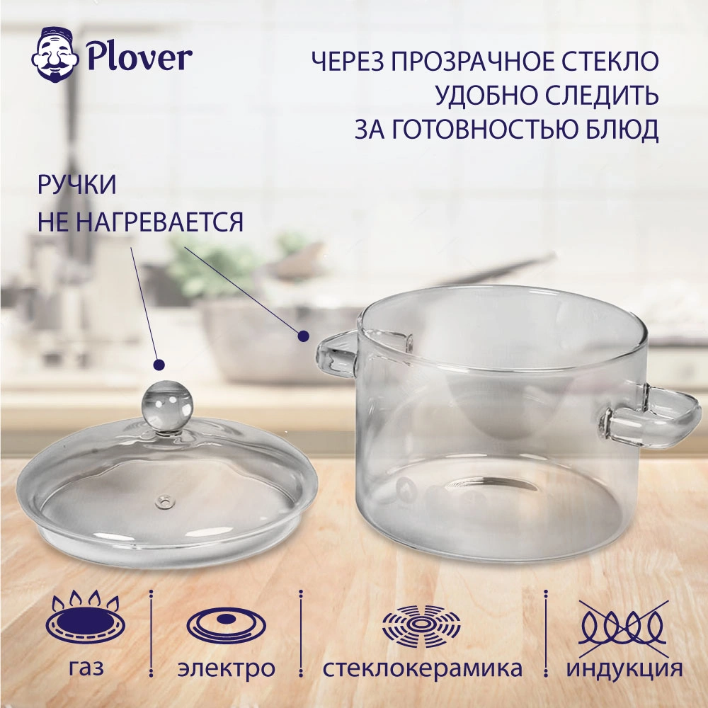 Стильный дизайн кастрюли 1.5 литра отлично вписывается в любой интерьер. Через прозрачное стекло легко следить за готовностью блюд. Подходит для использования на газовых плитах, для запекания и любых видов плит (кроме индукционной). Допустимая высокая температура +150 С и низкая -25 С. Кастрюля стеклянная отличный вариант для красивой подачи блюд на стол, необычный дизайн обязательно удивит Ваших гостей Ручка стеклянной кастрюли PLOVER не нагревается. При использовании нагревание кастрюля должны быть равномерным, иначе кастрюля может лопнуть. После приготовления, нельзя ставить горячую посуду на жидкость или любые другие предметы которые будут способствовать быстрому остыванию. Необходимо дождаться, чтобы кастрюля остыла на месте и после остывания ее можно переставить в нужное место. Кастрюля стеклянная подходит для подарка любимым друзьям и родственникам.