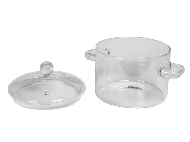 Стеклянная кастрюля с крышкой выполнена из боросиликатного, экологически чистого стекла!