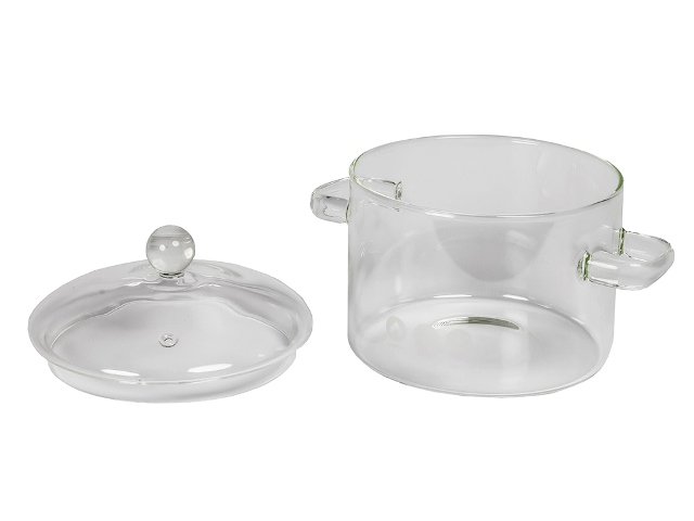 Стеклянная кастрюля с крышкой выполнена из боросиликатного, экологически чистого стекла!
