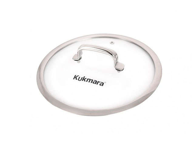 Посуда комплектуется стеклянной крышкой с отверстием для выхода пара, выполненная из высококачественного термостойкого стекла, идеально прилегающая к краям посуды и предотвращающая проливание жидкости. Широкий металлический обод защищает крышку от сколов и внешних повреждений. Имеется возможность наблюдать процесс приготовления блюд.