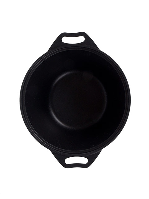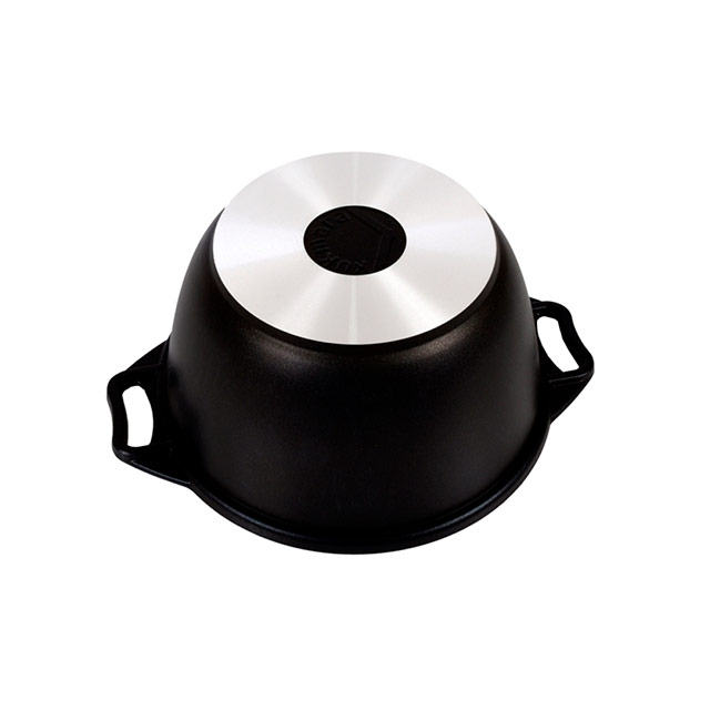 Посуду серии “Традиция” отличают классический черный цвет и стойкое трехслойное антипригарное покрытие со сверхпрочными минеральными частицами. Чтобы напыление лучше держалось, между ним и металлическим корпусом кастрюли нанесён слой с шероховатой поверхностью для лучшего сцепления. Проведенные в лаборатории предприятия испытания показали, что кастрюля “Традиция” выдерживает 12000 условных циклов истирания — полных циклов приготовления пищи, включая мытье посуды.